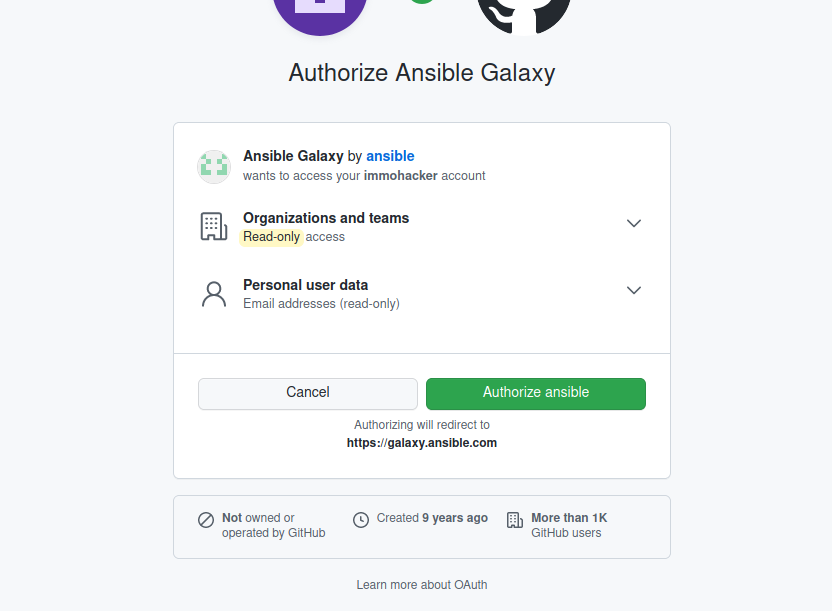 Konto bei Ansible Galaxy anlegen