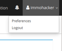 Nun sind wir eingeloggt. Wir loggen uns wieder aus. Dazu auf den namen und auf Logout klicken