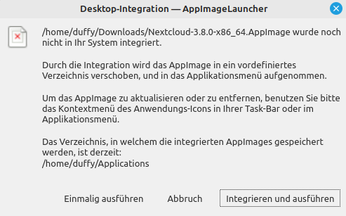 Möglichgeit zwei, wie im Installationsabschnitt beschrieben, die Appimage in den application Verzeichnis bzw. in den / die zu überwachenden Verzeichnis reinkopieren.