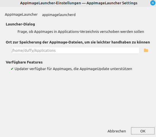 Im Register AppimageLauncher kann man den Pfad festlegen wo die Appimage hinsollen.