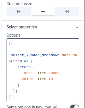 Wenn in der Appsmith Widget Tabelle auf editieren geklickt wird soll der Wert aus der dem Dropdownmenü die ID eingesetzt werden.