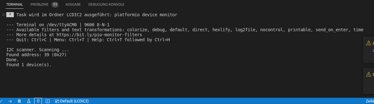 Es gibt zwei Varianten von IC2 LCD Modulen. Einmal mit Lötstellen A0 -A3. Standardmäßig ist hier meist auch 0x27 eingestellt