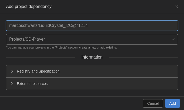 Wir benötigen dazu die LiquidCrystal Library IC2 (Diese im PIO-Home Library herunterladen)