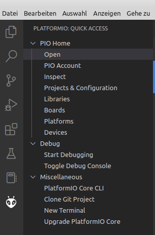 Nachdem VS Code installiert auf PlatformIO IDE.