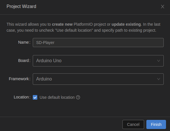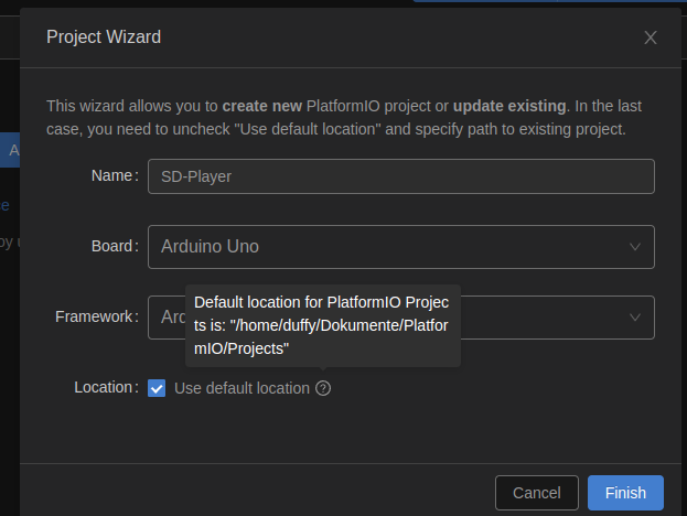 Nun den Namen Eintragen das Board auswählen. Hier ein Arduino Uno, Ihr wählt natürlich euer Board aus.