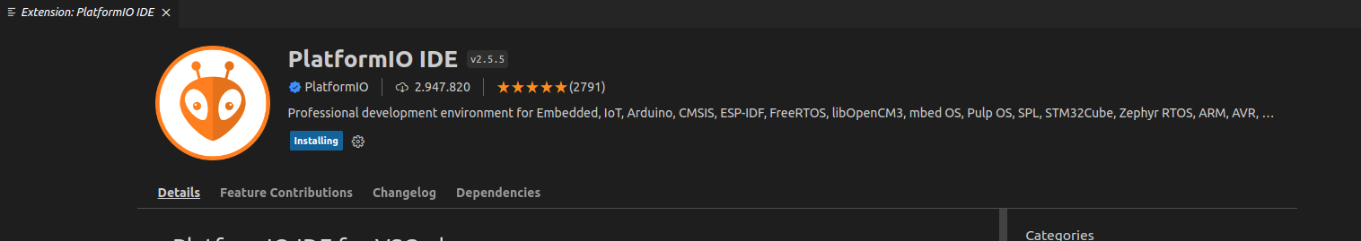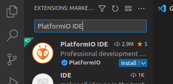 Und im Suchfeld PlatformIO IDE eintippen und dort dann auf install klicken wenn es gefunden wurde.