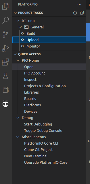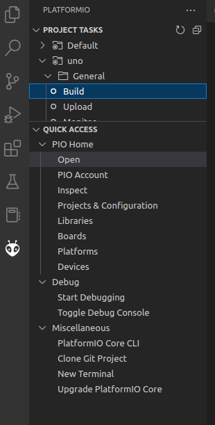 Links im Menü wieder auf den Ameisenkopf, Dort unter Project Taks -> Uno bzw eure Plattform - > General -> build