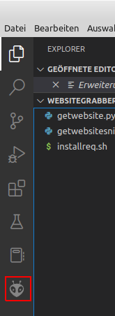 Dazu dabb VS Code öffnen dann auf Extension Manager klicken