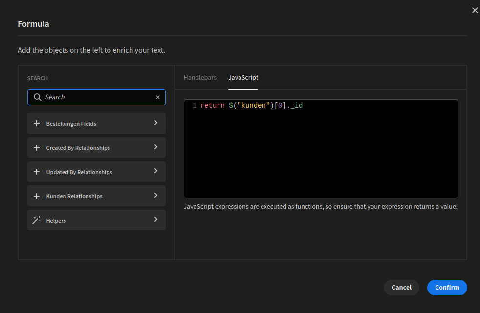 Wir erstellen ein neues Feld kundenanzeige vom typ Formula