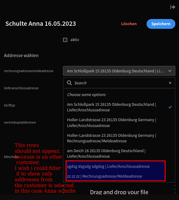 Mit dem normalen Relation ship Picker, werden dann wenn beim Vertrag die Adresse ausgewählt werden kann, leider alle Adressen angeben, von allen Kunden.