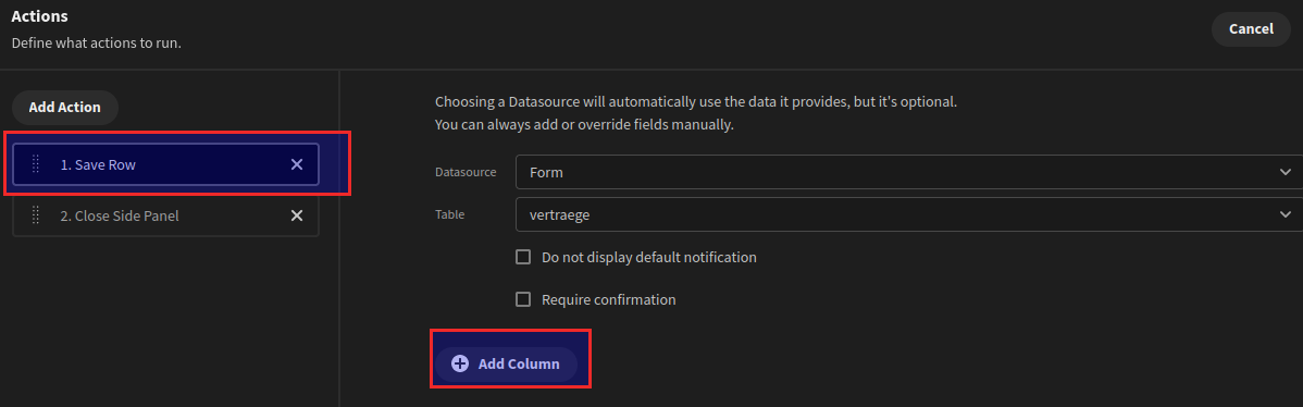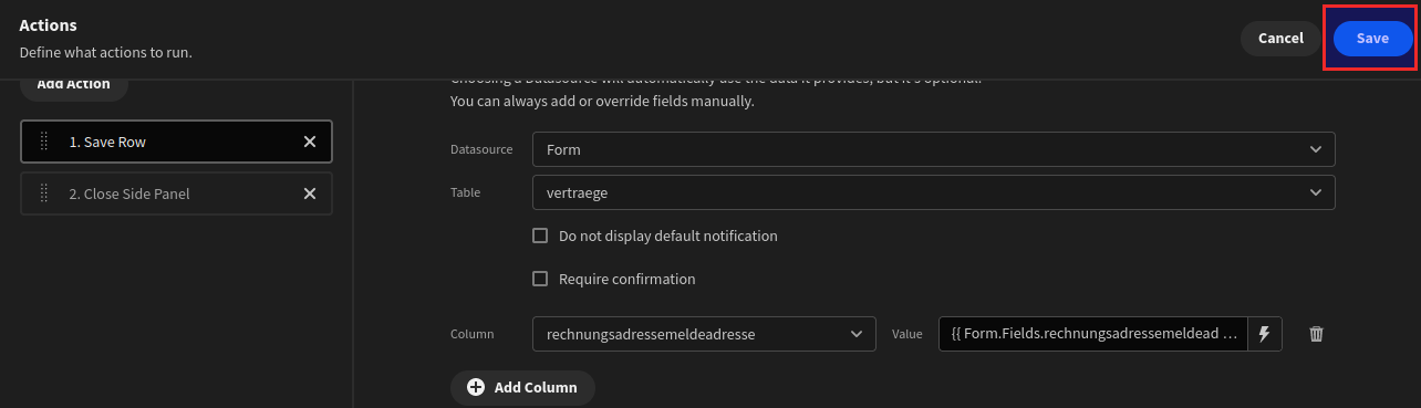 Unter Label coulumn können wir aus der Tabelle Adressen auswählen, welche Spalte benutzt werden soll das zur Anzeige dient.