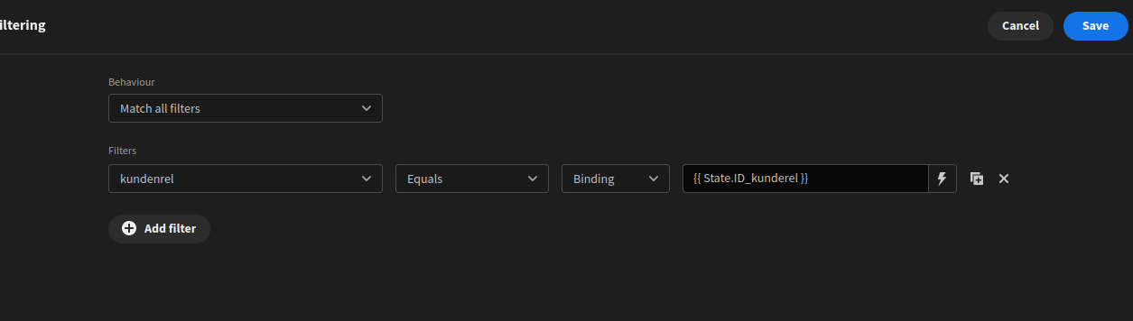 Leider gibt es in Budibase keinen Relationship Picker (Dropdownmenü wo man die Liste nochmals filtern kann.