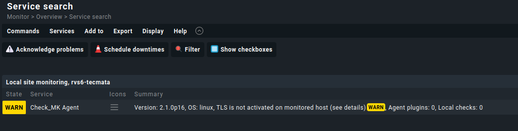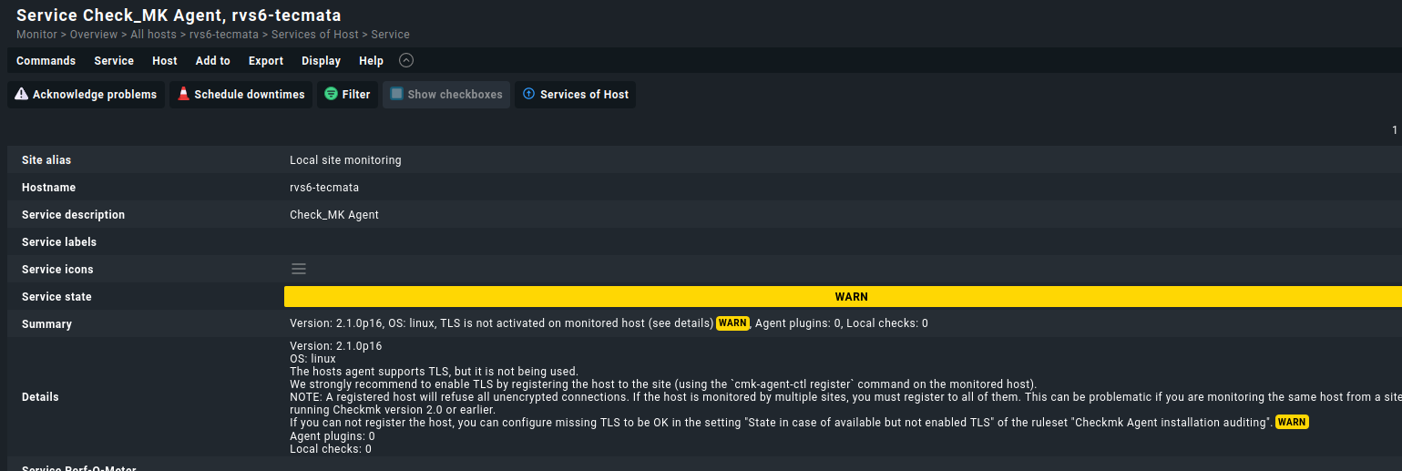 Wenn im Service AGENT diese Warnung steh, ist der Host mit seinem agent beim Checkmk Server noch nicht registriert.