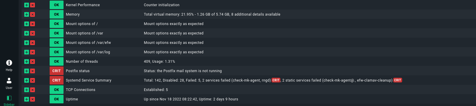 Wenn wir Dienste nicht überwacht ahben wollen klicken wir auf das rote x bei dem jeweiligen Dienst