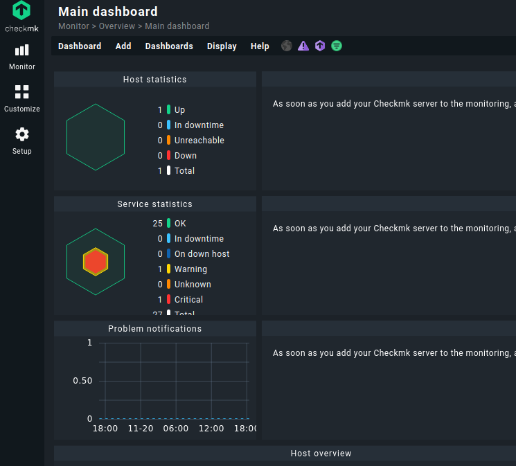 Hier gibt es eine Checkmk Warnung weil wir den Agent noch nicht registriert haben, kommt später.