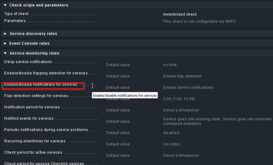 Enable Diable notification for Services auf disabled stellen, denn das wollen wir ja