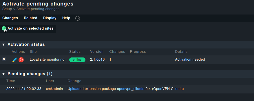 OMD[monitoring]:~$ mkp install /tmp/openvpn_clients-0.4.mkp