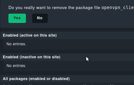 Nun mit folgendem befehl das Package wieder entfernen, wird nix zurücggeben, war es erfolgreich.