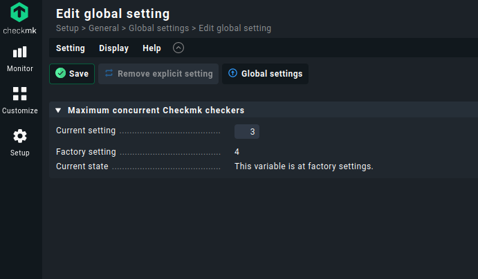 Dann auf Maximum concurrent Checkmk checkers klicken
