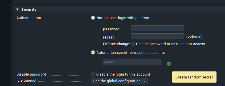 Unter Users das  API Kennwort für den Benutzer automation ändern bzw. festlegen.