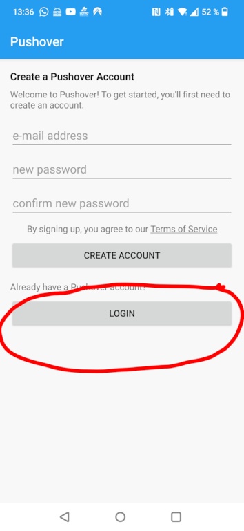 Emailadresse und Passwort zum Account eingeben und wieder auf Login klicken