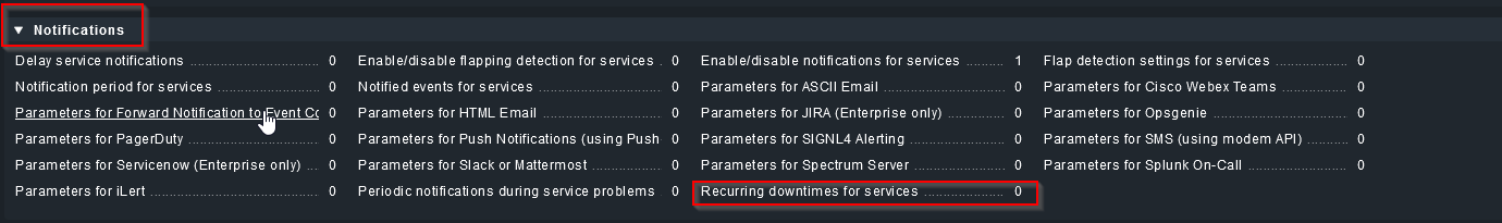 Dann runterscrollen bis Notifcations und dann Recurring downtimes for Services anklicken