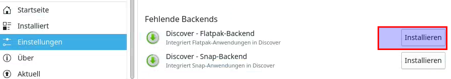 Dazu Discover öffnen auf Einstellunge und Flatpak Backend installieren