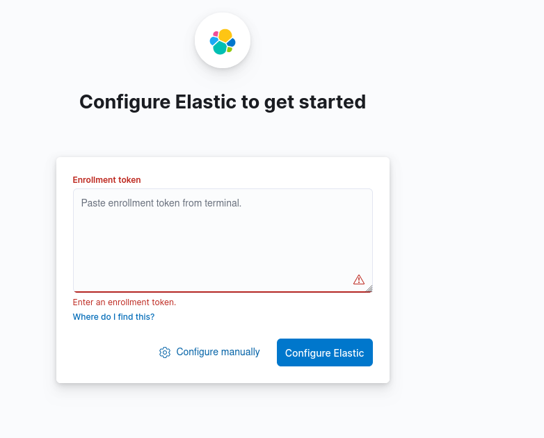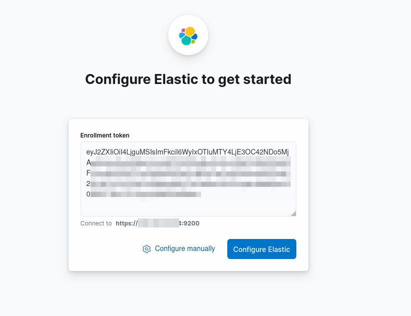 Diesen Token kopieren und auf der Weboberfläche einfügen und auf configure Elastic klicken.