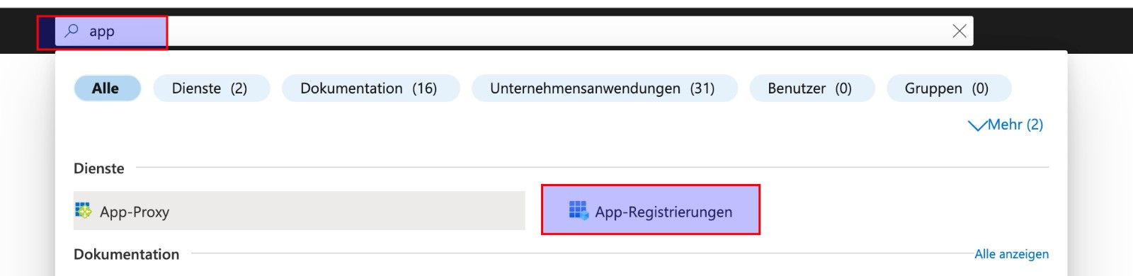 Nun oben in der Suche App eingeben und auf App Registrierung klicken