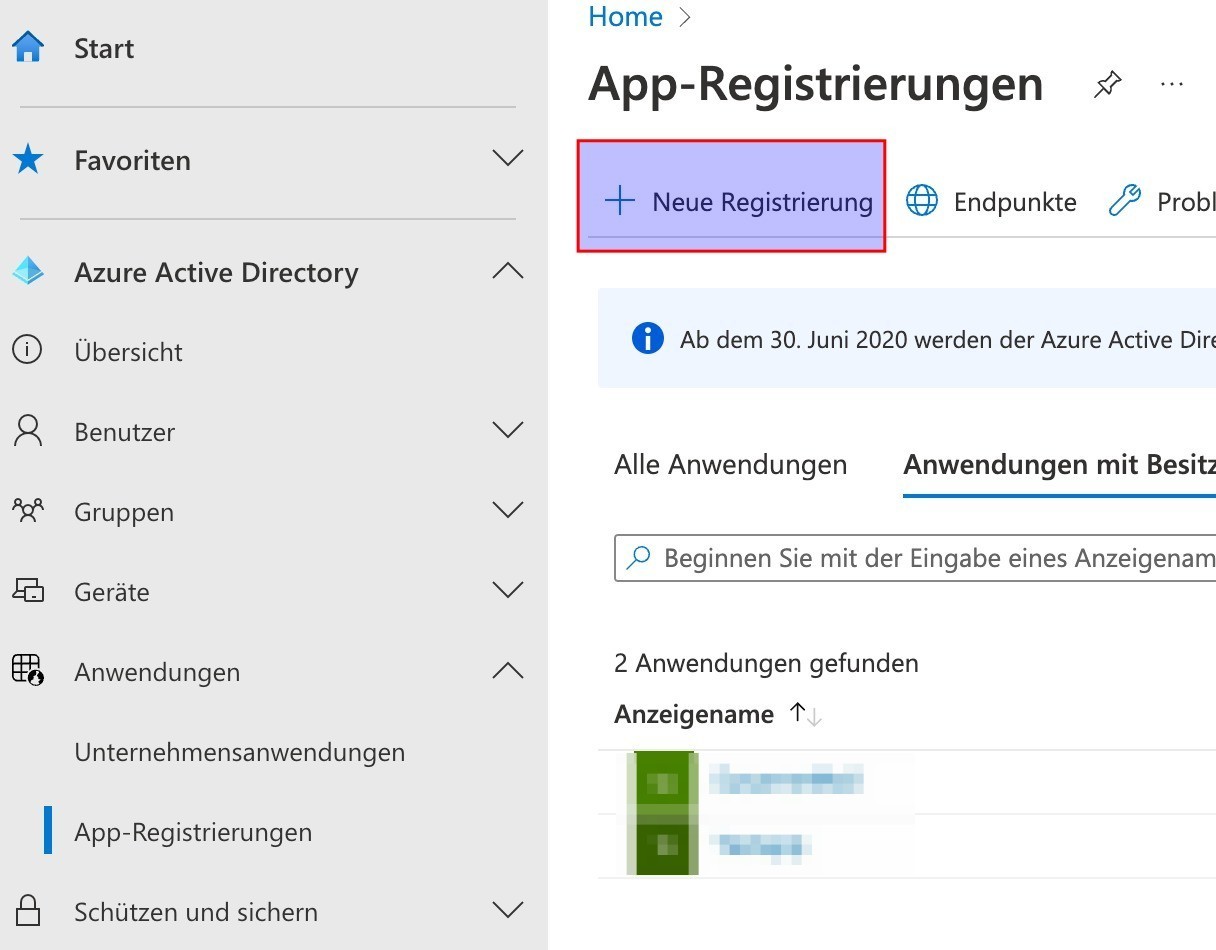 Dazu in https://portal.azure.com als Administrator einloggen.