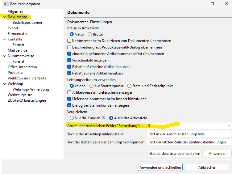 Mann kann maximal 3 Benutzerdefinierte Felder in den Rechnungen platzieren.