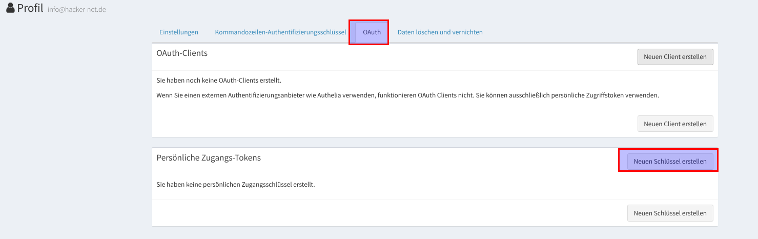 Nun brauchen wir noch den Access token aus dem Profil