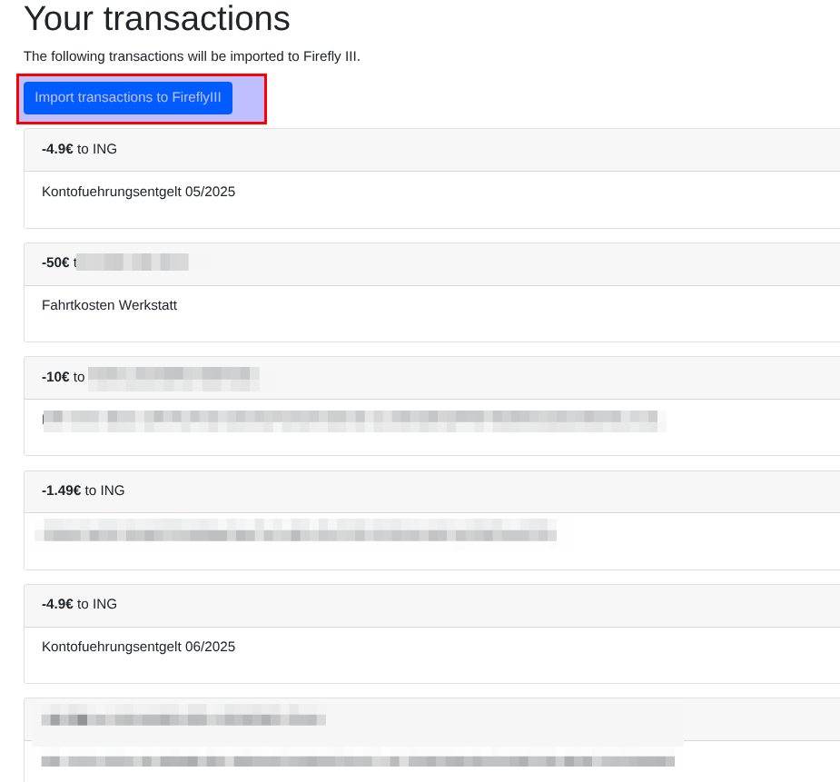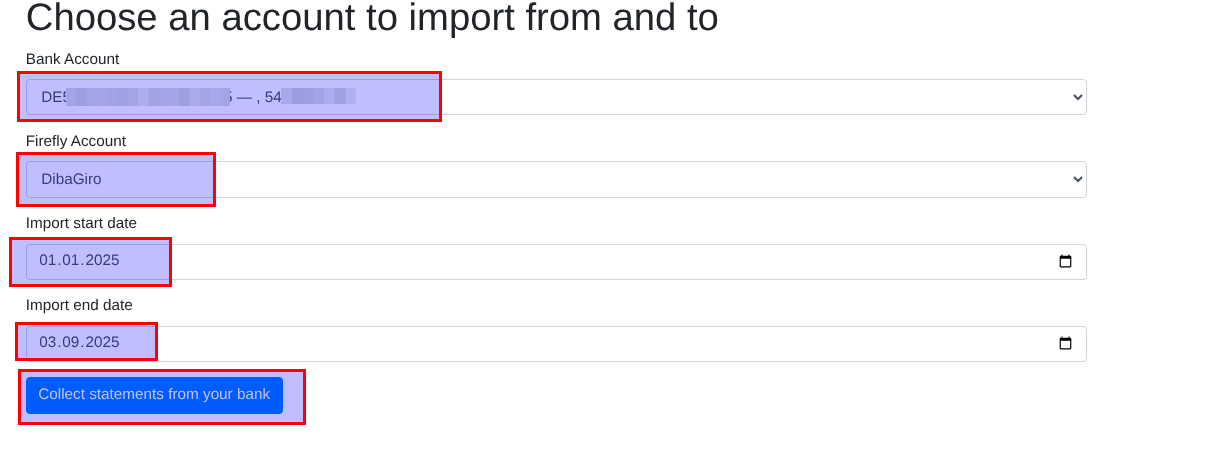 Wenn im Online Banking mehrere Konten sind, das auswählen und dann das Konto in Firefly auswählen und den Zeitraum