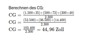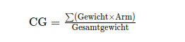 Der Schwerpunkt (Center of Gravity, CG) wird durch die Formel berechnet: