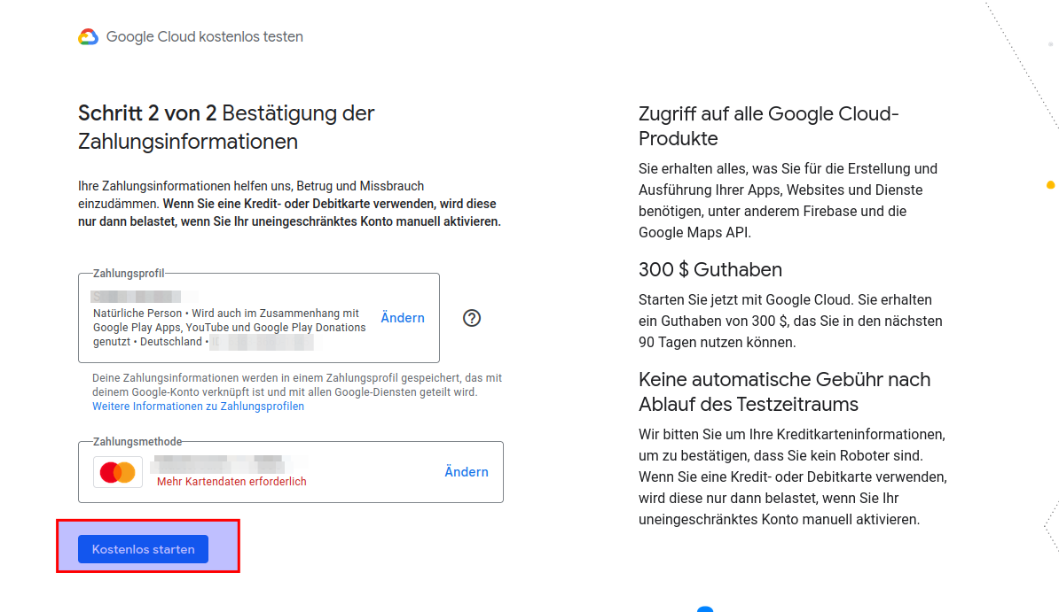 Nun werden uns noch ein paar Fragen über uns selbst gestellt und danach sind wir auf der Oberfläche, fertig ist die Anmeldung und es kann weiter mit dem API Key gehen.