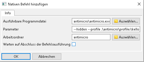 Fertig. Antimicro kann geschlossen werden oder noch weitere Profile anlegen.