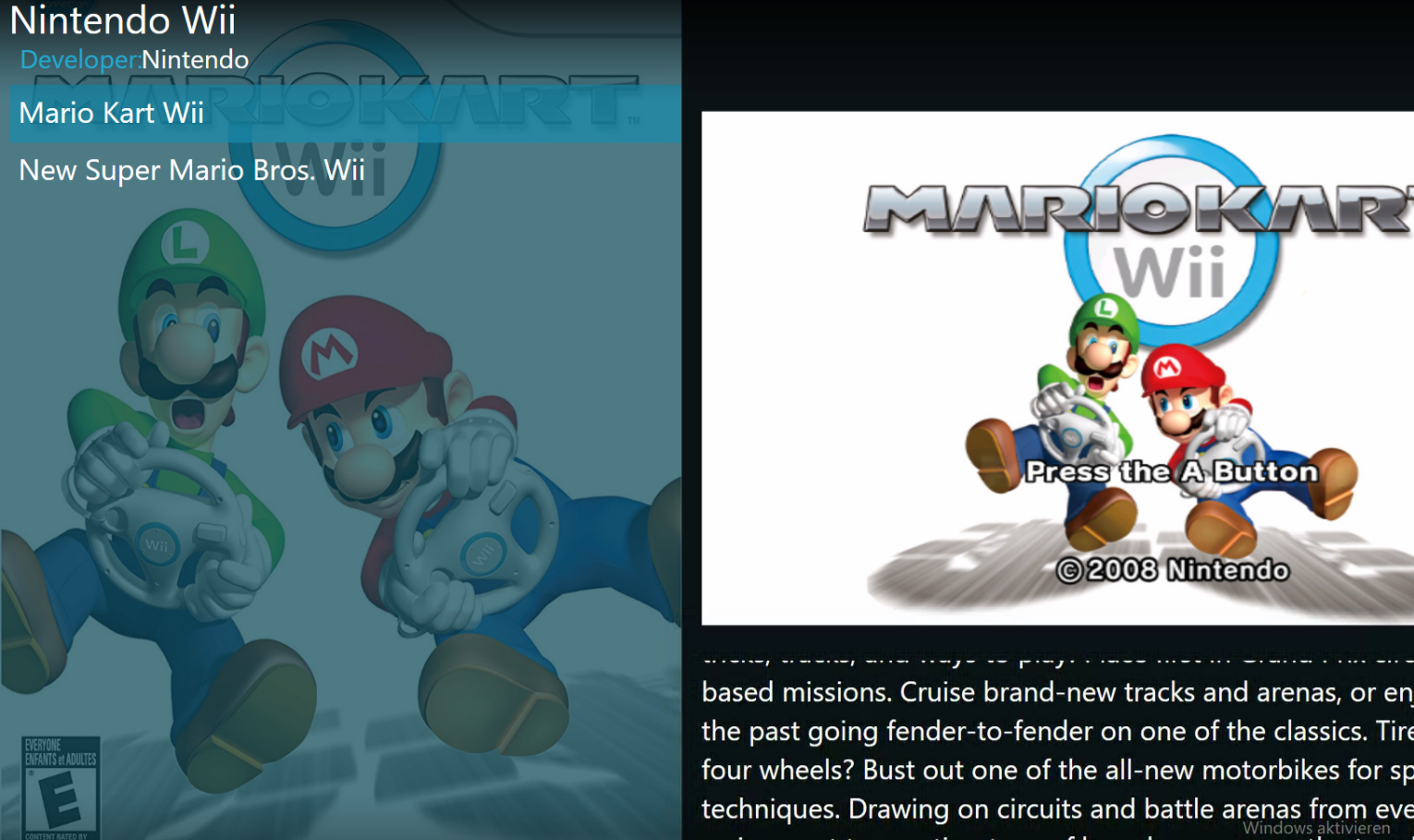 Drücken wir jetzt enter auf der Wii. Bekommen wir die Spiele liste.