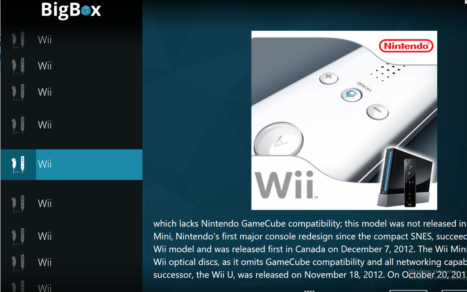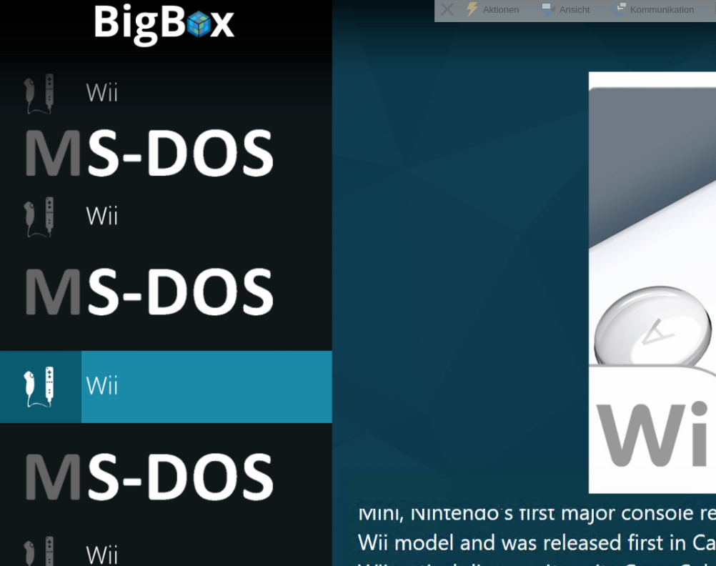 Nun mit esc zurück zur Oberfläche nun lässt sich BigBox auch mit Controller steuern.