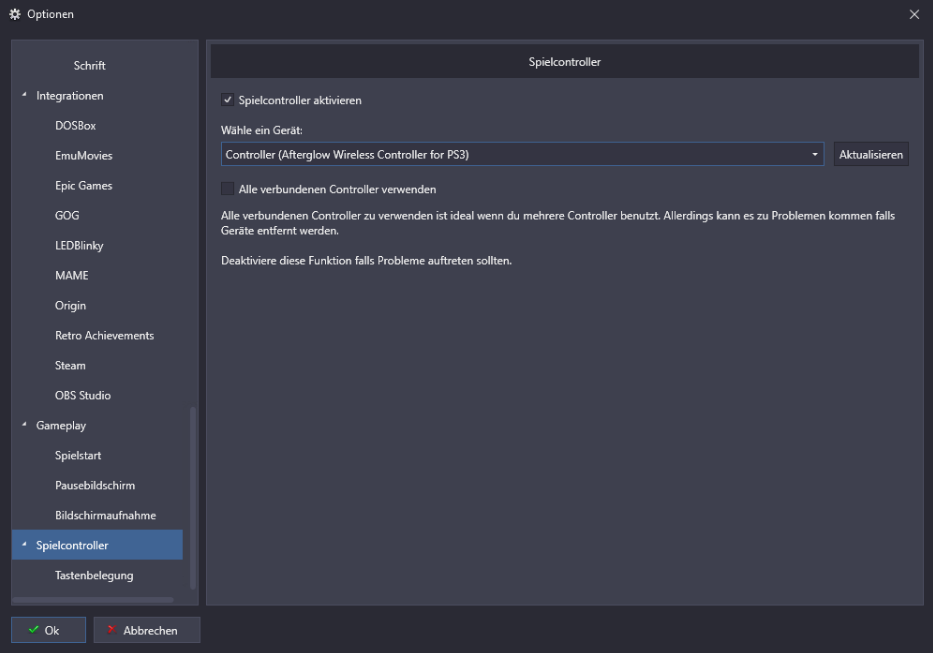 Dann auf OK. Fertig nun läuft die Navifation mit Controller