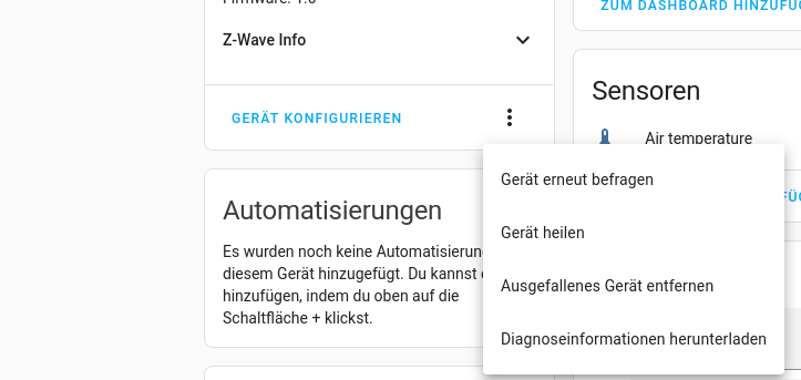Dazu gehen wir unter Einstellungen ->Geräte & Dienste -> dann bei Z-Wave auf den Button konfigurieren.