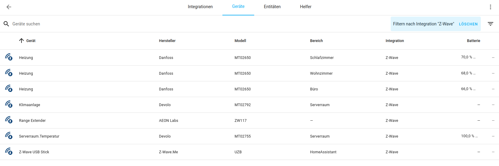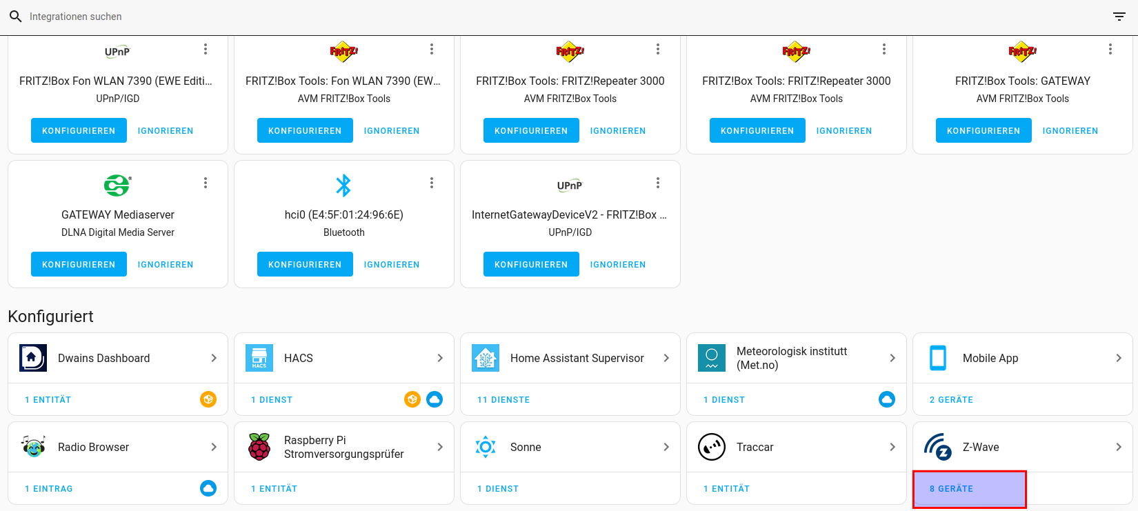Dann zu Z-Wave scrollen und auf die Geräte mit anzahl klicken