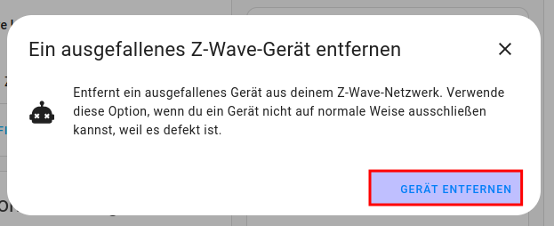Ersteinrichtung - Z-Wave Gerät entfernen