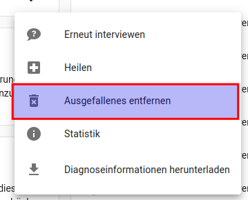 Dort dann im Menü auf ausgefallendes Gerät entfernen klicken