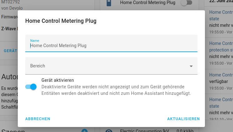 wir klicken jetzt auf Home Control Metering bzw bei euch welches Z-Wave Gerät Ihr angemldet habt.