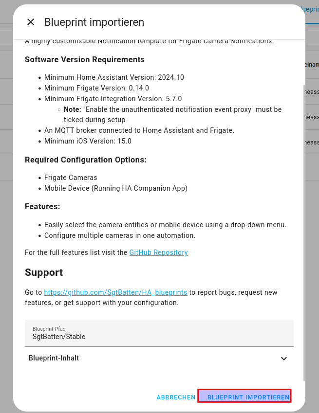 Die URL zum Git Repo : https://github.com/SgtBatten/HA_blueprints/tree/main/Frigate_Camera_Notifications