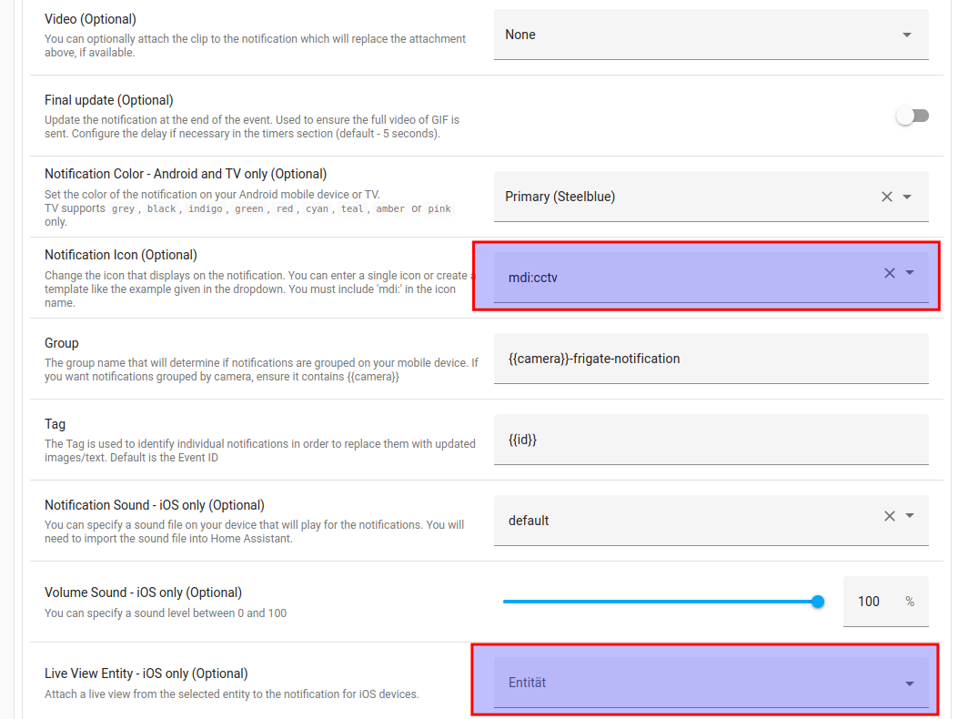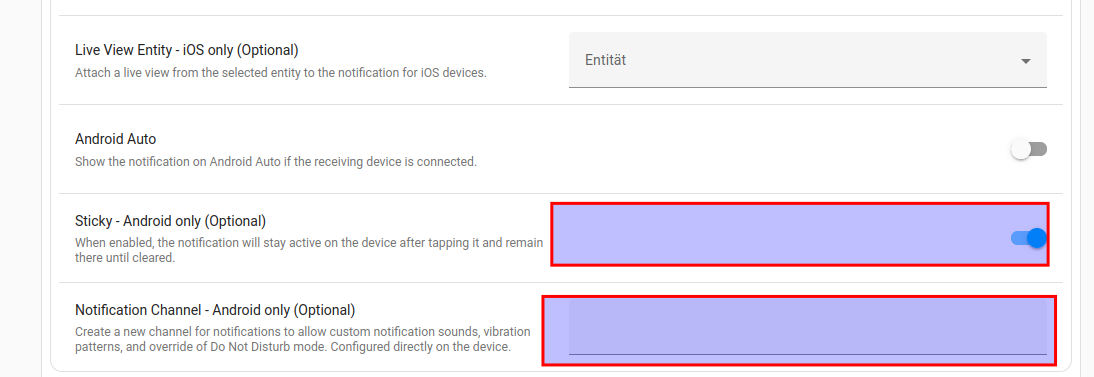 Notification Channel, lass ich hier leer, aber möchte man einen eigenen Kanal so kann man in Benachrichtungen Home Assistant app hier einen eigenen Klingelton angeben. Denn dieser Kanalname wird beim ersten senden in der App registriert, so das man nach dem ersten Senden den Tpon anpassen kann. SOnst wird der Standard Wecker / Alram ton vom System genommen, wenn das Feld leer bleibt. Ich lasse es leer.