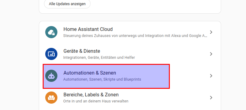 Auf einstellungen und Dann Automationen und Szenen