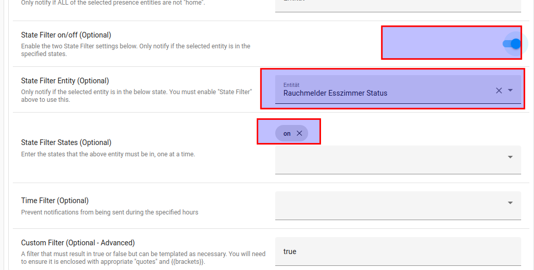 In diesem Fall sollen nur Ereignisse gesendet werden, wenn der Rauchmelder rauch meldet.