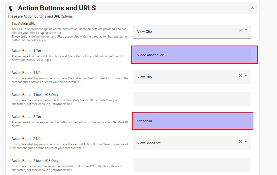 Die Texte für die Action Buttons ändern.