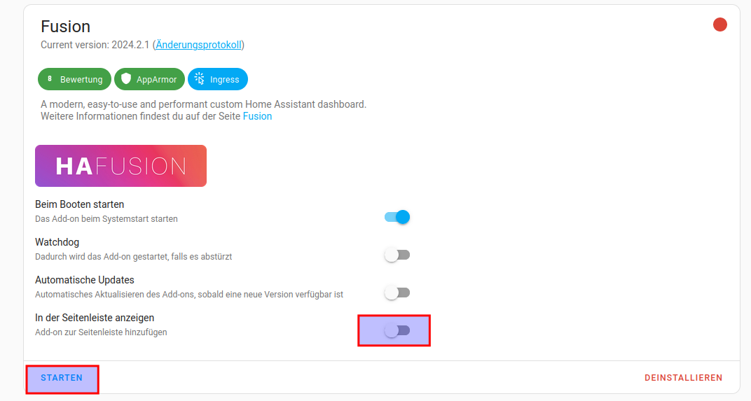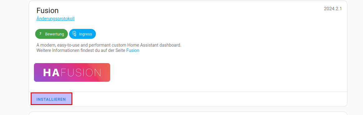 Wieder auf den Addons Store gehen und nun haben wir in der Liste die Addons von der Hinzugefügten Repo und auch unser HA Fusion Addon.